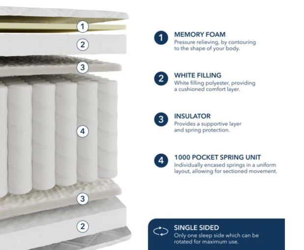 - Designed with 1000 individual pocket springs, it expertly responds to your movements, ensuring minimal sleep disturbances.