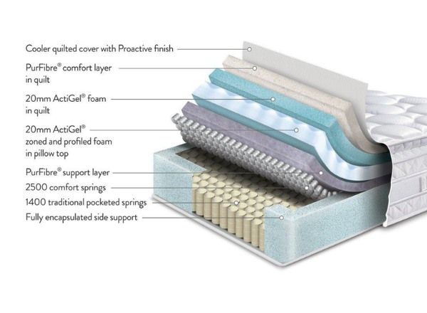 • The 4cm ActiGel layer and PurFibre support layer provide pressure relief and targeted support to your body.