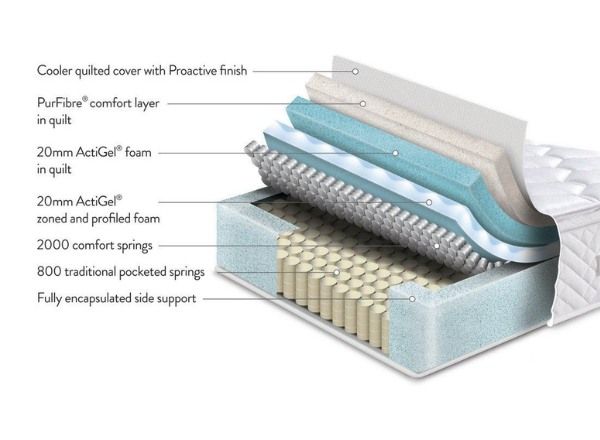 • The 4cm layer of ActiGel® foam and PurFibre® foam provide zoned and optimised support in key areas of your body. At the same time they keep you cool throughout the night.
