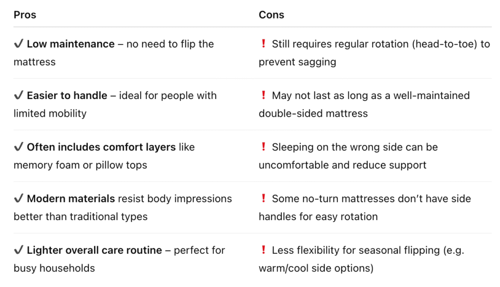 Pros of No-Turn Mattresses